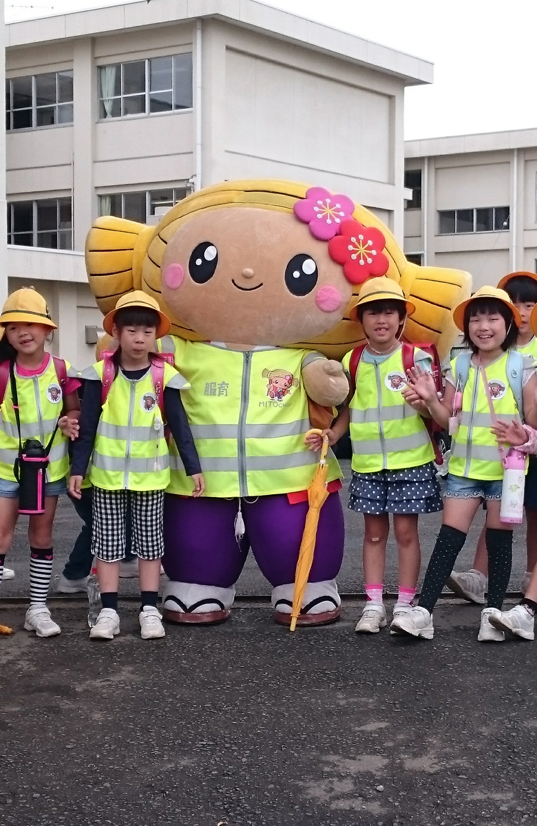 ⑥子ども達の大切な命を守る交通安全事業。官民連携により、みとちゃんピカベストを開発。交通事故ゼロ継続中。