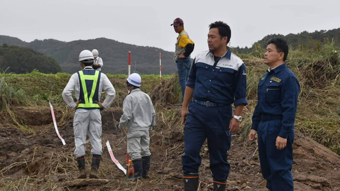 ⑦3年前の台風19号豪雨により水戸市北部地区で浸水被害が発生。現場に入り、被害状況の把握、復旧に全力投球。