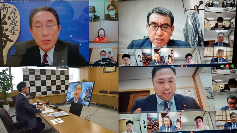 ⑤上月りょうすけ参議院議員、加藤あきよし参議院議員との一枚。県や国の先生方と連携して課題解決に臨む。
